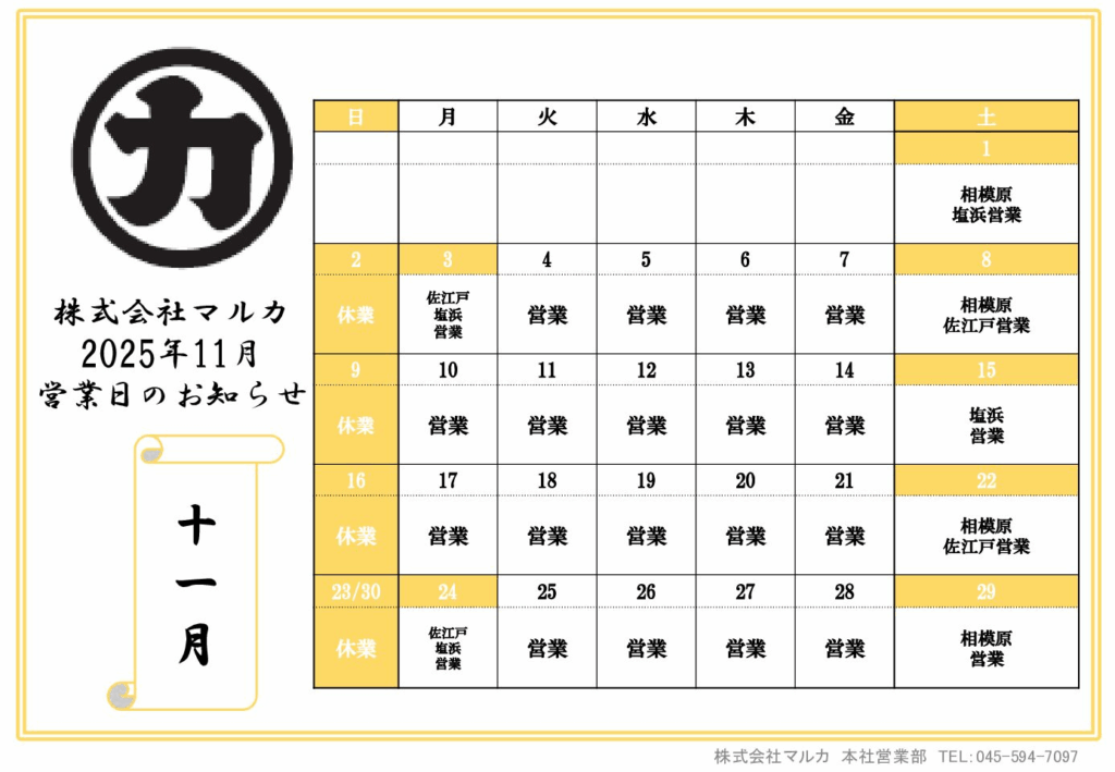 2025年11月 営業日のお知らせ